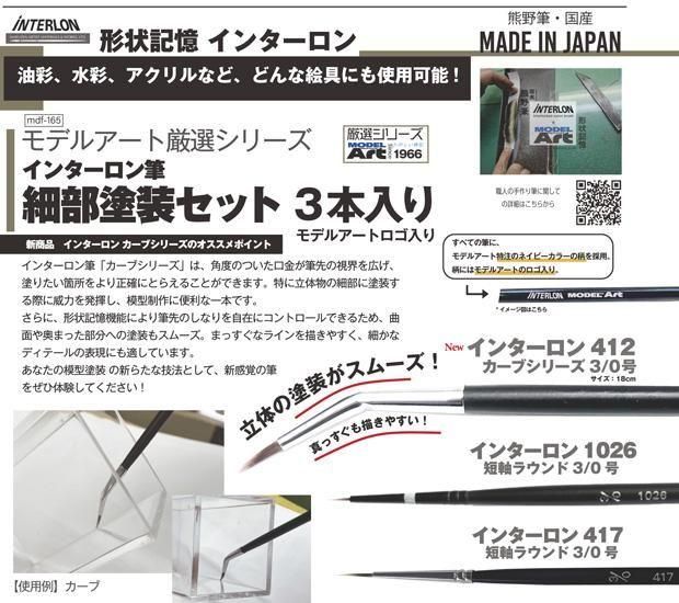 インターロンの新商品「カーブシリーズ」発売に伴い、モデルアートが厳選した3種類の細部塗装用の筆をセットで販売!油彩、水彩、アクリルなど、どんな絵具にも使用可能。